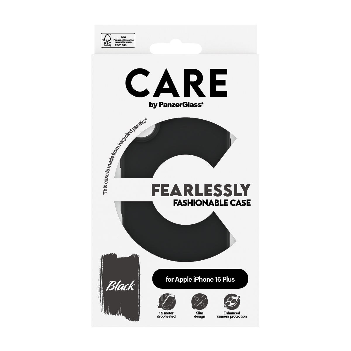 CARE by PanzerGlass® Fashionable Case Black iPhone 16 Plus