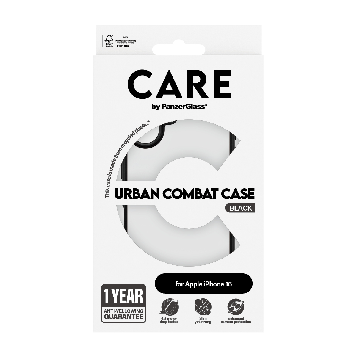 CARE by PanzerGlass® Flagship Case Transparent Urban Combat w. Black Frame iPhone 16