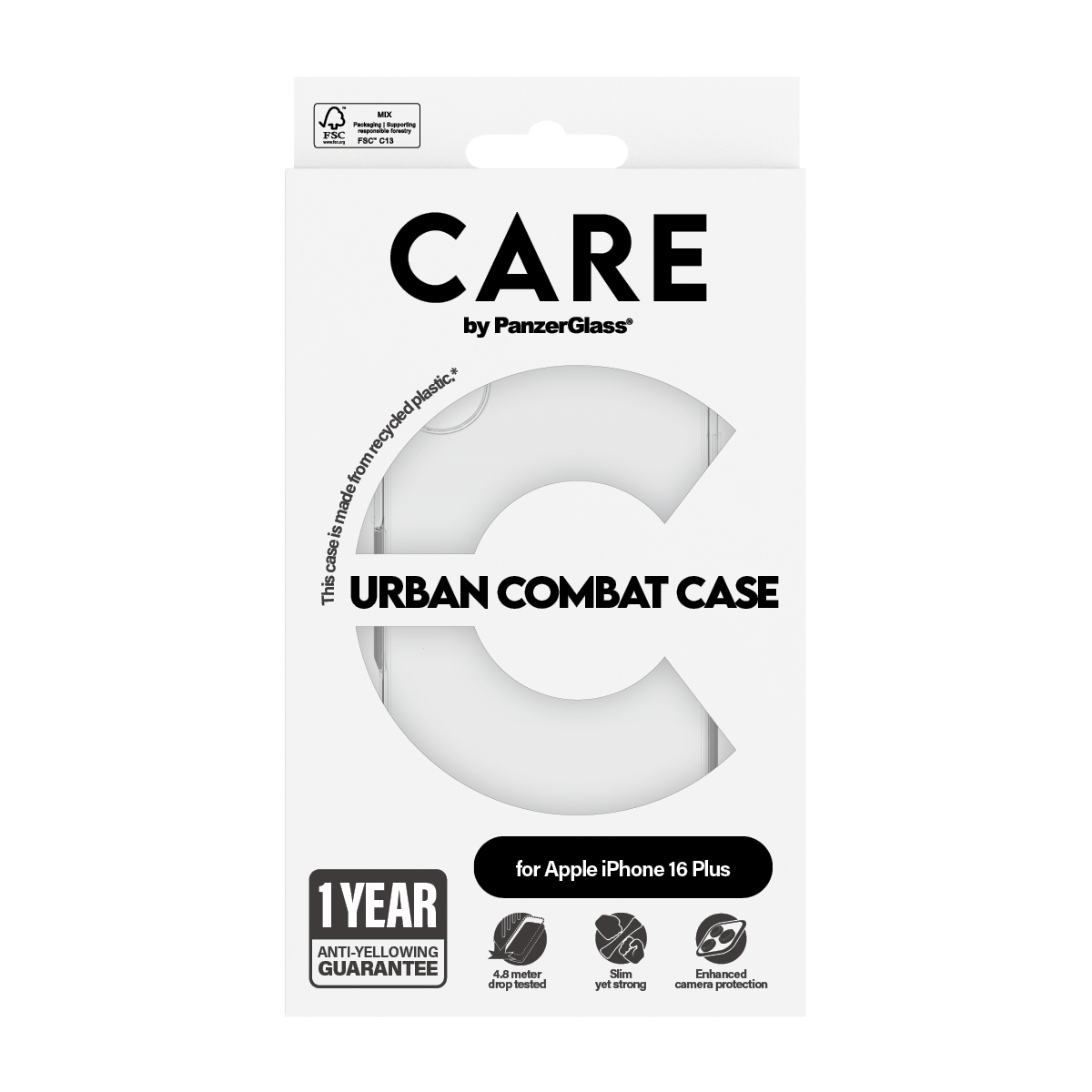 CARE by PanzerGlass® Flagship Case Transparent Urban Combat w. Clear Frame iPhone 16 Plus