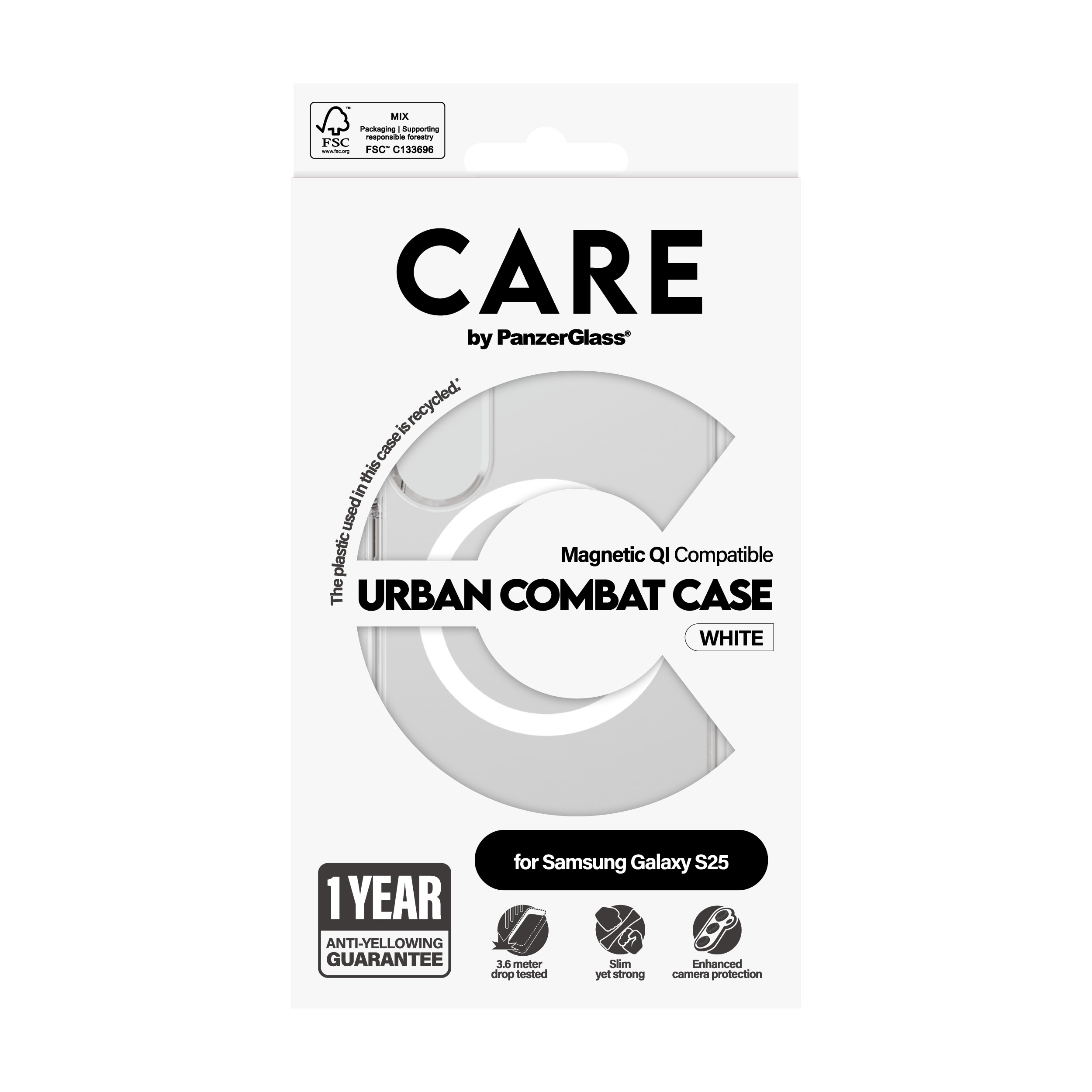 CARE by PanzerGlass® Flagship Case Transparent Urban Combat w. White Qi Compatible Samsung Galaxy S25