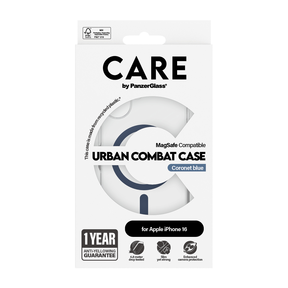 CARE by PanzerGlass® Flagship Case Urban Combat w. Blue MagSafe for Apple iPhone 16