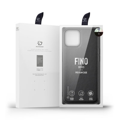 Το Fino είναι μια σειρά από κομψά καλύμματα τηλεφώνου, σχεδιασμένα από τη μάρκα Dux Ducis. Η θήκη είναι κατασκευασμένη από ανθεκτικό πολυανθρακικό με μαλακή άκρη TPU, ενσωματωμένη στρώση PVC και νάιλον ύφασμα που εγγυάται σταθερό κράτημα. Το υλικό είναι ανθεκτικό στη βρωμιά, δεν αφήνει δαχτυλικά αποτυπώματα πάνω του. Οι ανυψωμένες ζάντες γύρω από την οθόνη και τον φακό αποτρέπουν τις γρατσουνιές.