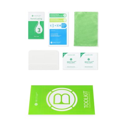 Το γυαλί διαθέτει τα απαραίτητα στοιχεία για αυτοσυναρμολόγηση, συμπεριλαμβανομένου ενός προσαρμογέα για εφαρμογή γυαλιού. Μετά την εφαρμογή, το γυαλί προσκολλάται τέλεια στην οθόνη, χωρίς να αφήνει φυσαλίδες αέρα και η φόρμουλα χωρίς κόλλα διευκολύνει την αφαίρεση του γυαλιού χωρίς να αφήνει σημάδια.