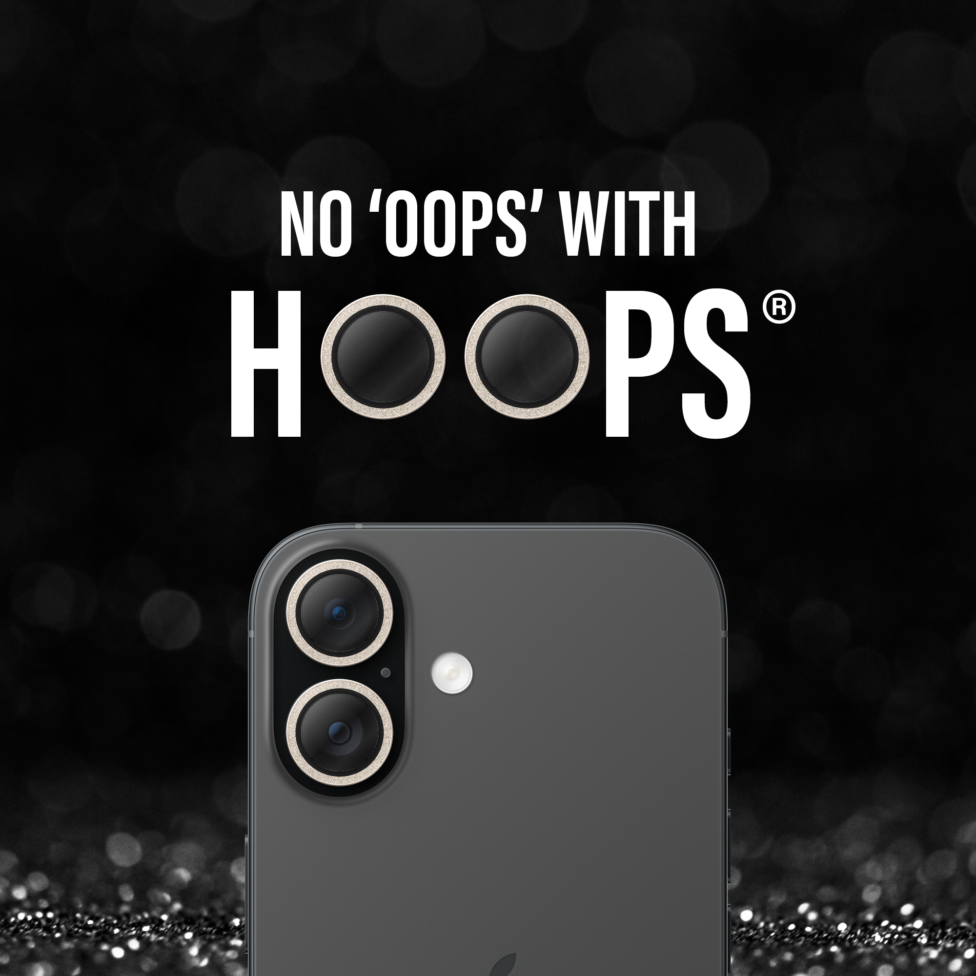 Όχι “Ουπς!” με τα Hoops®! ΛΑΜΠΕΡΟ. Απογειώστε τη λάμψη σας και αναβαθμίστε το στυλ σας με πολύτιμους λίθους. Το προστατευτικό φακού κάμερας PanzerGlass® Gold Glitter Hoops® είναι το επόμενο επίπεδο σε στυλ και προστασία. Ακριβής εφαρμογή, λαμπερά πετράδια και αντοχή στις γρατσουνιές. Τα χρυσά glitter Hoops® προστατεύουν τους φακούς της φωτογραφικής μηχανής σας από τυχαίες πτώσεις σε σκληρά πέτρινα δάπεδα, χτυπήματα σε αιχμηρή γωνία και το ουρλιαχτό φιλί των κλειδιών στην τσέπη σας.
