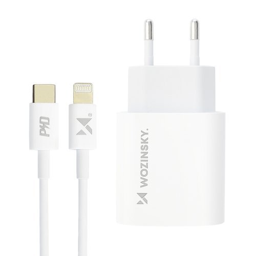 Wozinsky fast EU USB Type C Power Delivery 20W wall charger + cable USB Type C / Lightning cable 1m white
